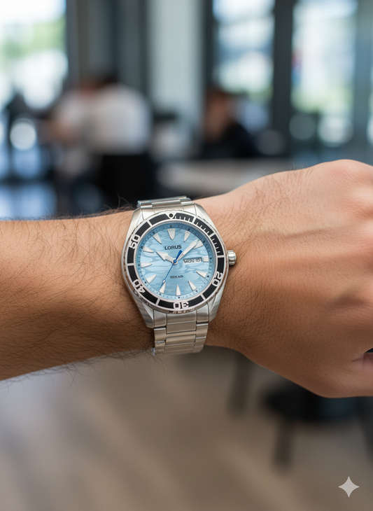 Lorus Men Sports Blue Dial Date Analogue Stainless Steel Bracelet Watch