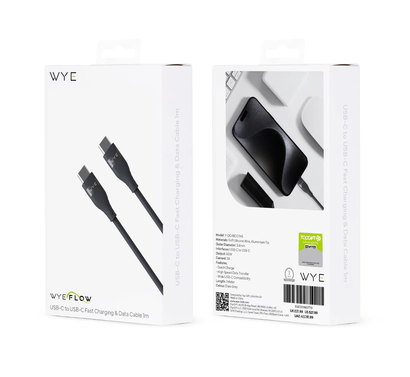 60W Super Fast WYEFLOW USB-C to Type-C Charging & Data Cable 1m Compatible with GaN lll Charger