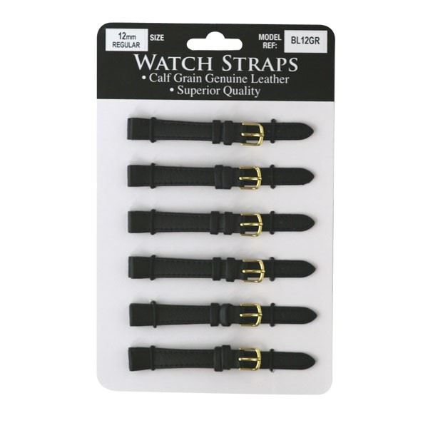 BLGR Regular Black Leather Straps card of 6 (12/18mm)
