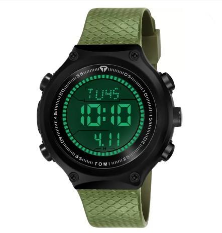 Digital display @ night light Colour: Black and green Lite weight 100% Waterproof Can Use For Men & Women Best Quaility Watch Nice Look For Hand Alarm ,Date ,Calander ,Light ,Stop Watch , and Countdown
