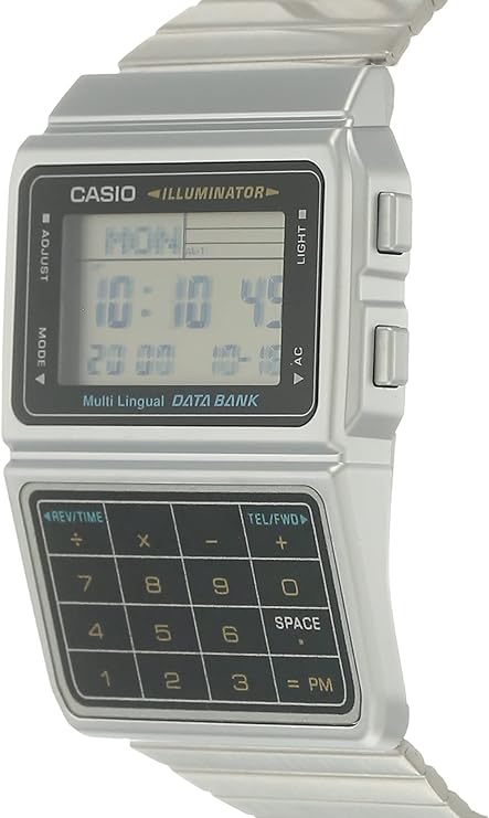 Casio Men's Calculator Watch DBC-611-1DF. Functions:- 25 pages of Telememo 1/100-second stopwatch Dual time 5 alarms Auto LED light Stainless steel band Case / bezel material: Resin Stainless Steel Band Adjustable Buckle Resin Glass LED lightAuto light sw