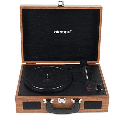 - Enjoy listening to your old and new vinyl records on this stylish Intempo audio turntable featuring a wood effect retro design.