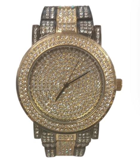 NY LONDON MENS BLING WATCH PI-7625 GUN GOLD