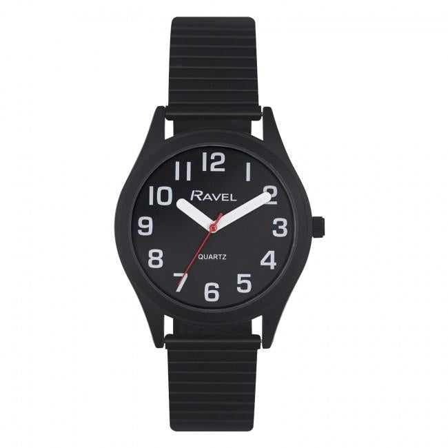 Ravel Mens Basic Bold Easy Read Expander Bracelet Watch Black/Black R0225