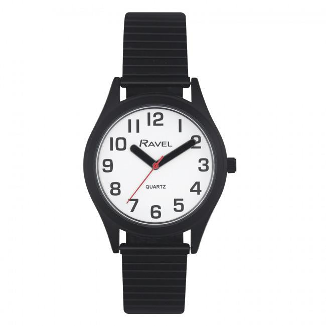 Ravel Mens Basic Bold Easy Read Expander Bracelet Watch White/Black R0225