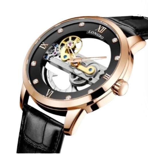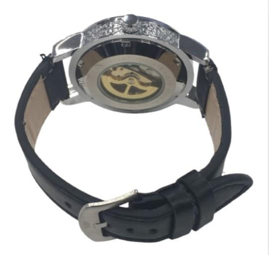 Lorus Mens Automatic Date Black Dial Black Leather strap Watch RU411AX9