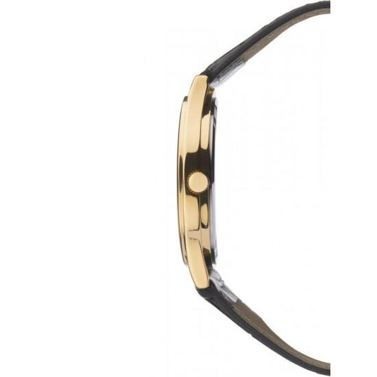 Lorus Mens Basic Fashion Date Black Dial Gold Plated Stainless Steel Bracelet Watch RH934QX9
