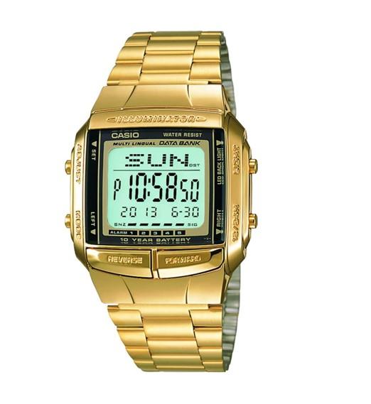 Casio Mens Databank Dual time Digital LED backlight Gold tone Bracelet Watch - DB-360G-9ADF