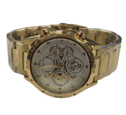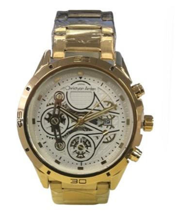 Christyan Arden Mens Fashion Dated Dial Analogue Gold/White Metal Bracelet Strap Watch