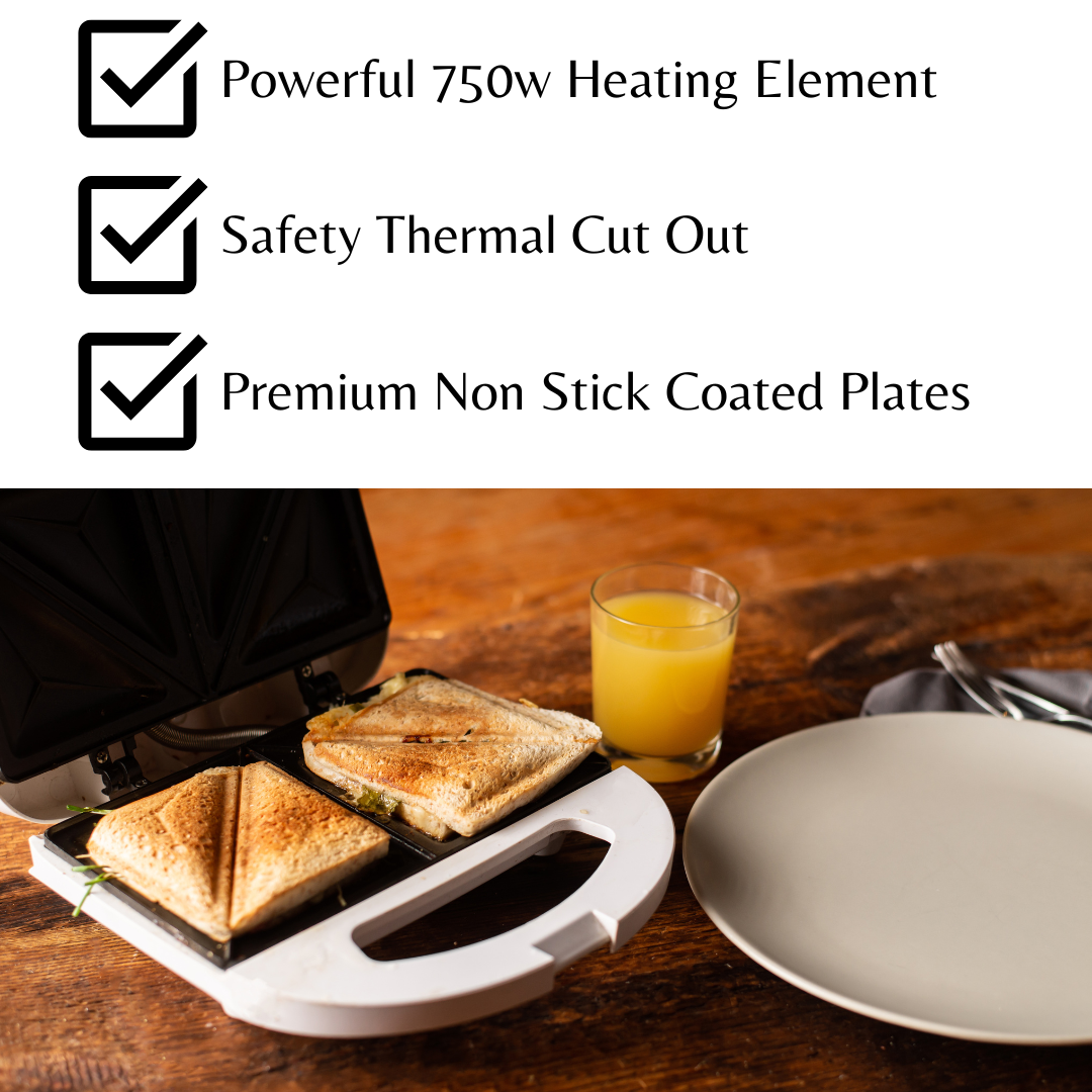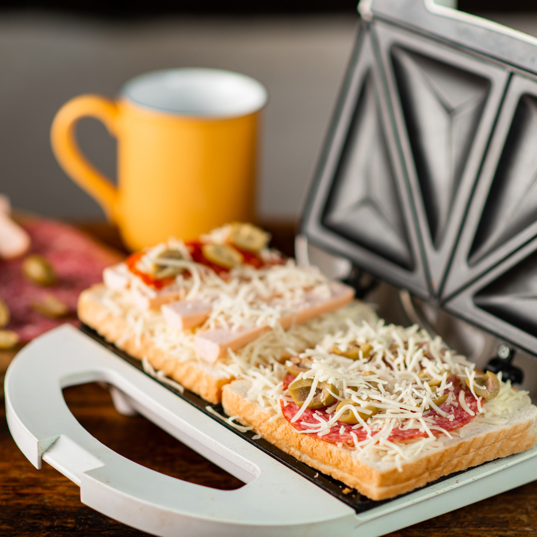 Elevate Your Snack Game with Our 750W Sandwich Maker - Your Ultimate Toasties Machine! Experience snack time like never before with our 750W Sandwich Maker, designed to create mouthwatering toasties, including cheese toasties that will satisfy your cheese cravings.
