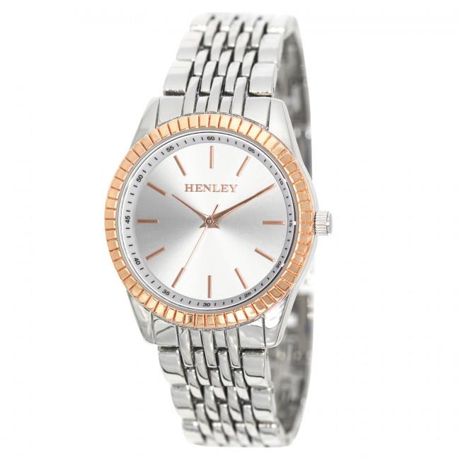 H07328 ladies watch is a fabulous dress watch that can accompany any outfit. The polished case featuring the rose gold top ring and sunray dial, make this watch perfect for every occasion. This bracelet is further enhanced by a double buckle for easy adjustment. Available in silver/silver, silver/rose gold, silver/brown and rose gold/rose gold. All Henley ladies fashion watches come packed in the deluxe Henley ladies mink / pink presentation gift box.