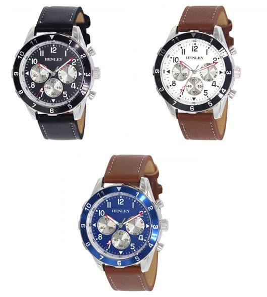 Henley Mens Fashion Multi Eye Classic Sports Leather Strap Watch H02213 Available Multiple Colour