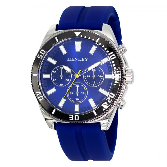 Henley Mens Fashion Polished Multi eye 44mm Dials Soft Silicone Watch H02228 Available Multiple Colour