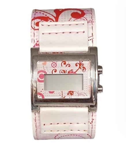 Ladies Digital White & Pink Design Leather strap Watch - CLEARANCE NEEDS RE-BATTERY