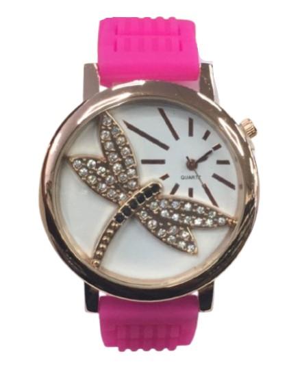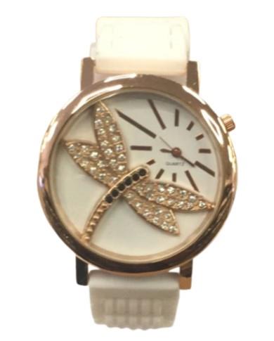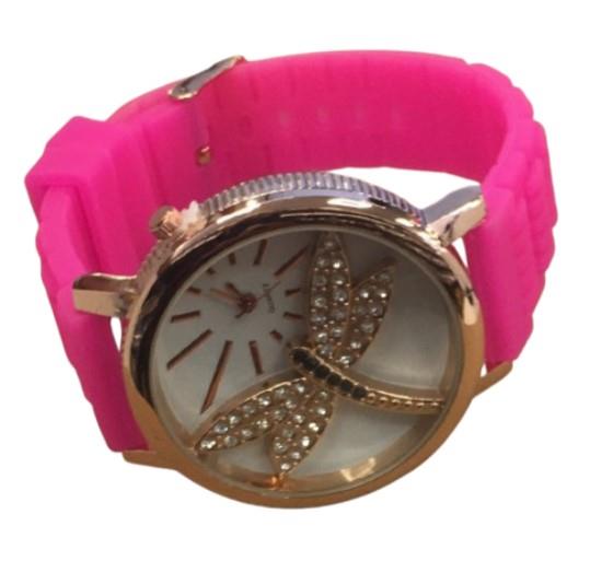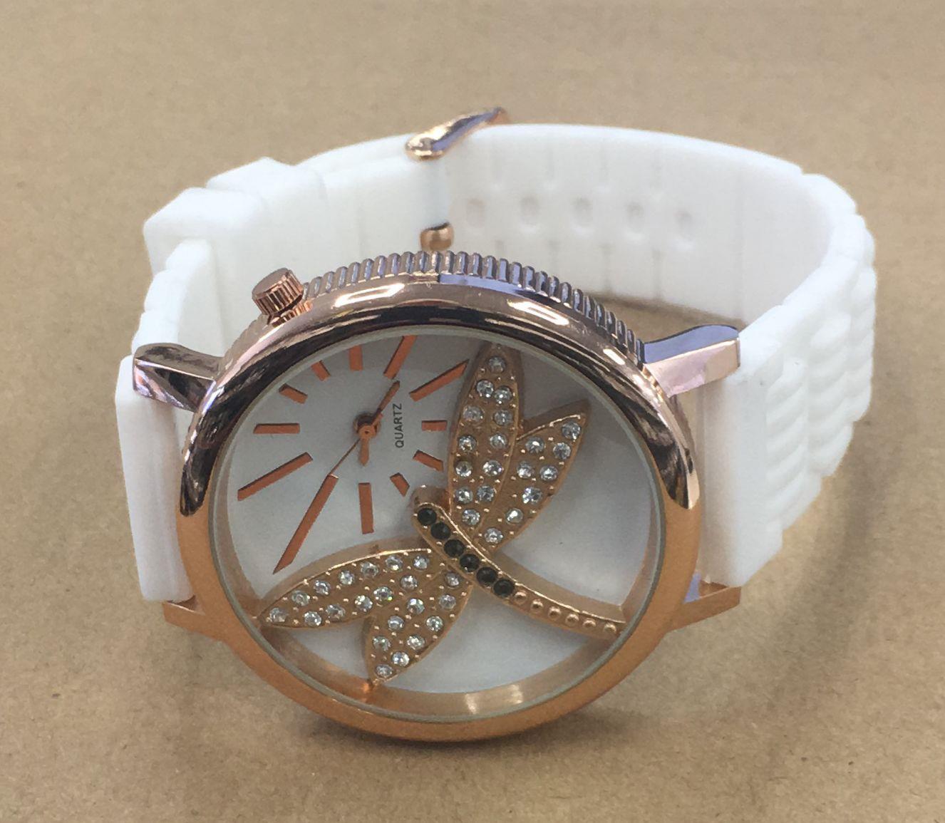 Ladies Fashion Butterfly Bling Dial with Rubber Strap Watch - CLEARANCE NEEDS RE-BATTERY Available Multiple Color
