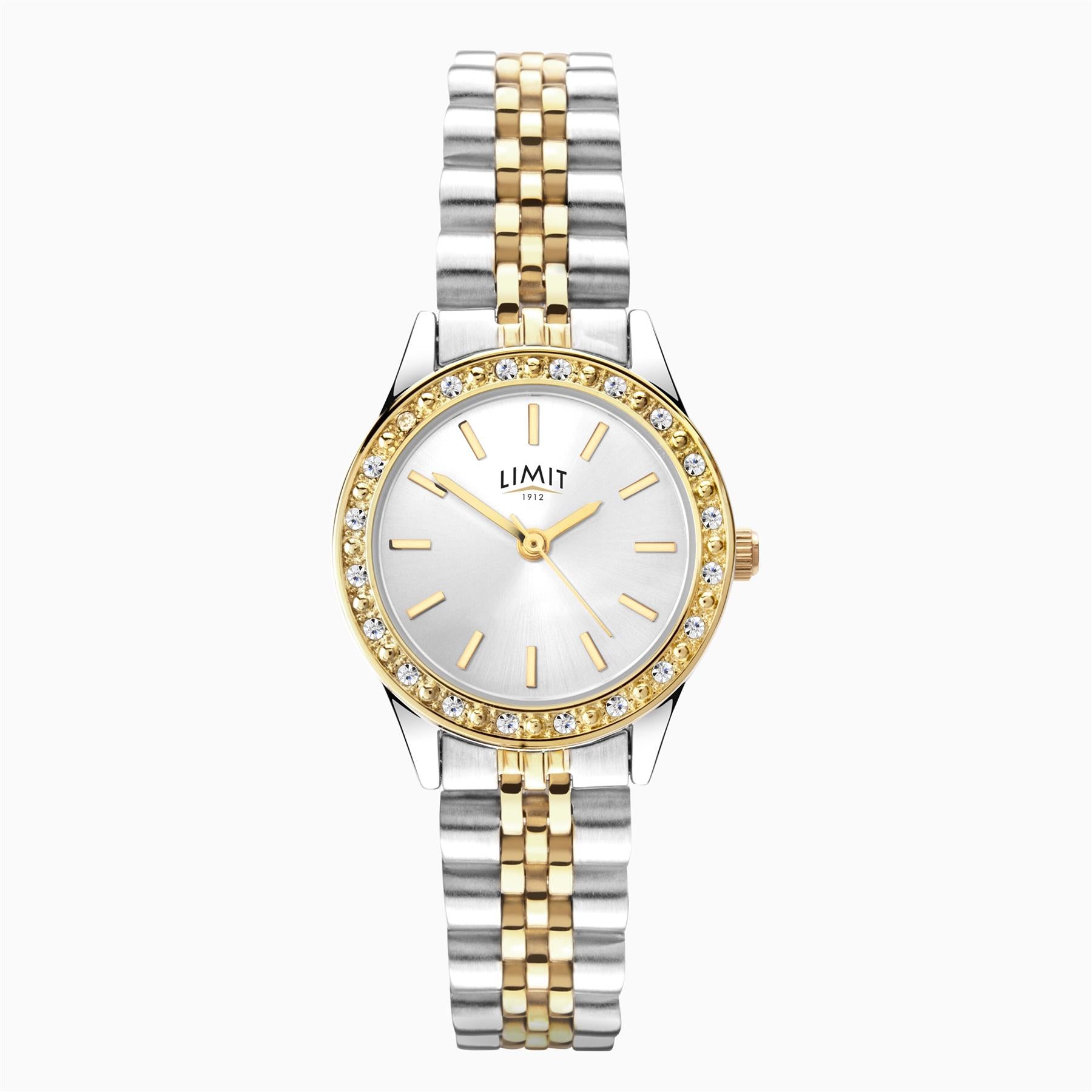 Limit Ladies Bling Gold Case & 2 Tone Alloy Bracelet with Silver White Dial Watch 6292