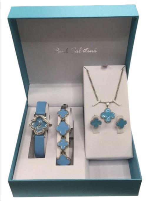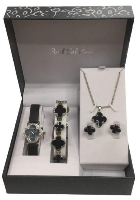 Paul Salatini Ladies Fashion Bling Dial Leather Strap Watch Bracelet, Necklace & Earrings Gift Sets 2530 Available Multiple Colour