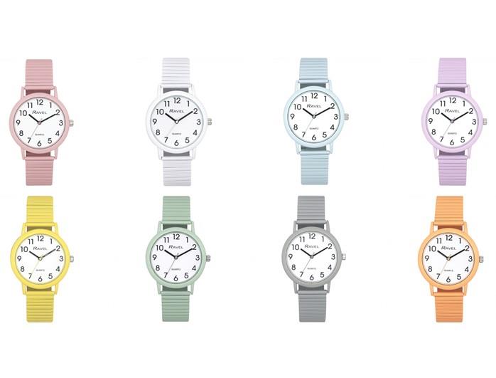 The new Ravel R0237 series, is the long awaited popular Ravel expander with a splash of colour. With it's coloured slimline soft comfort expander bracelet and bold, clear, concise easy to read dial the R0237 combines basic functionality, comfort and personality in one timepiece. Simple and clear, this watch will do the job.