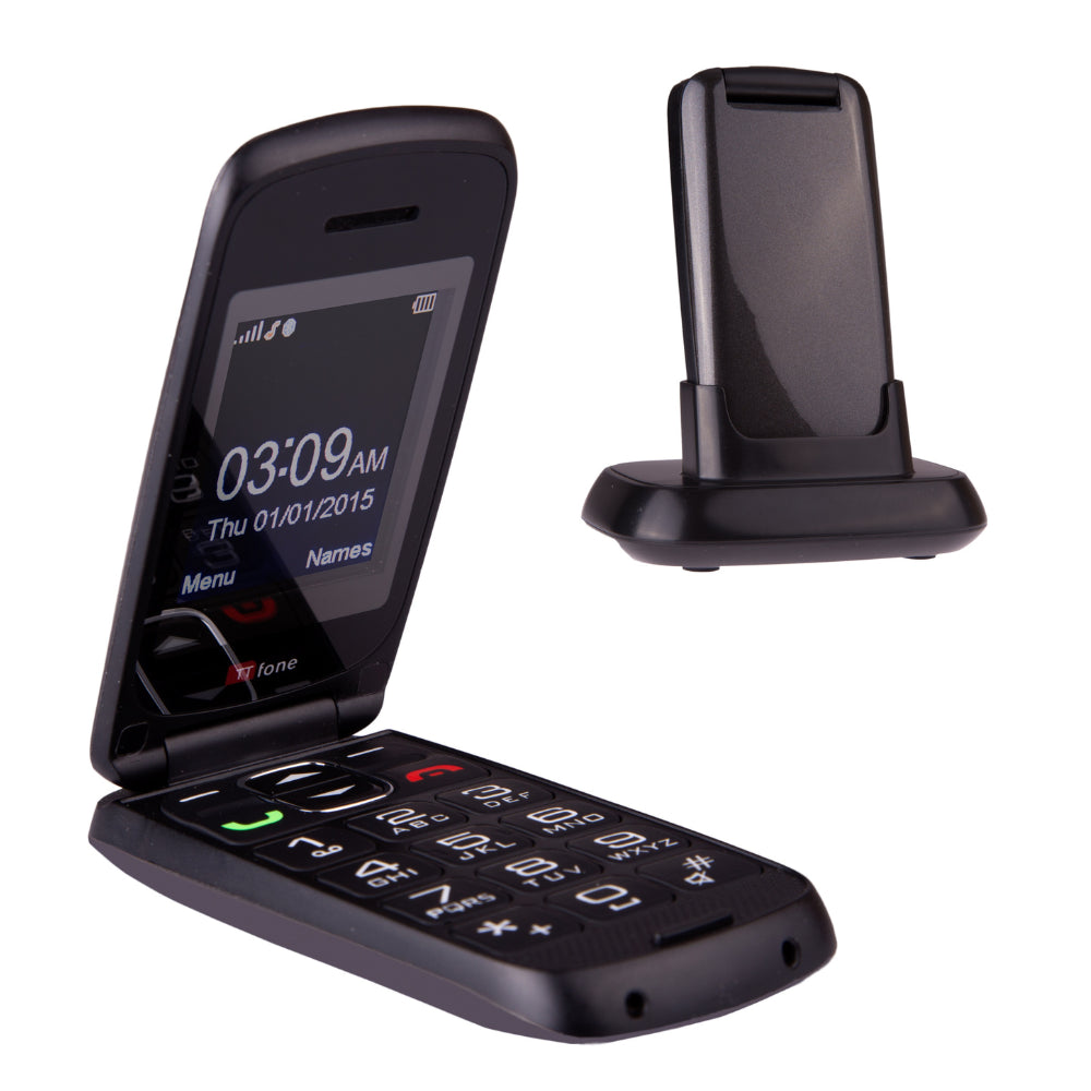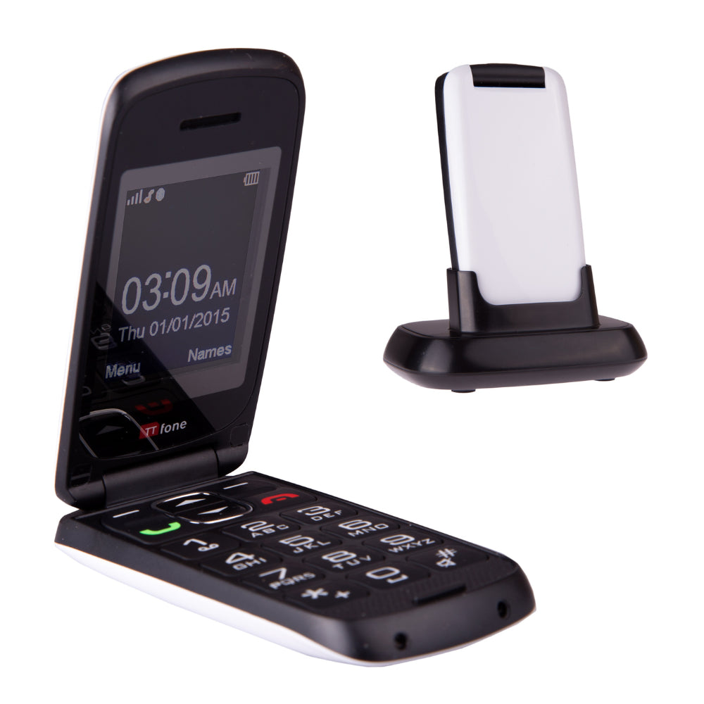 TTfone Star SOS Bluetooth Radio flip senior phone TT300 White + Charging Dock