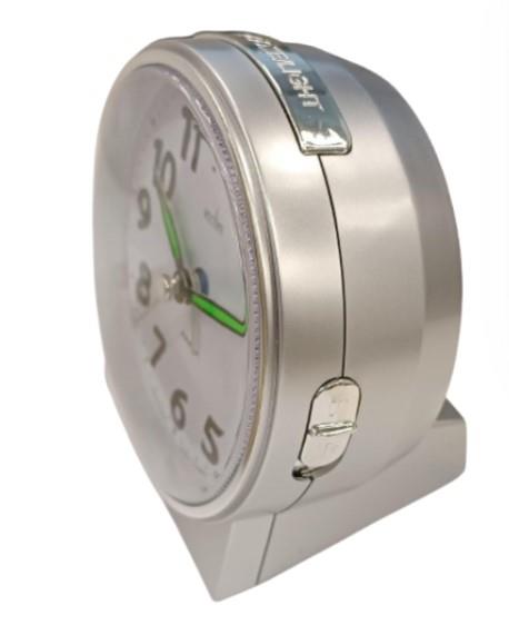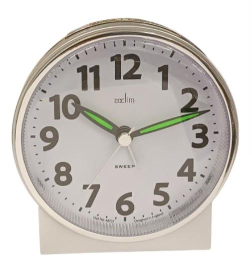Acctim Micah Round Mid Sized Bedside Quartz Alarm Clock in Silver - 16477