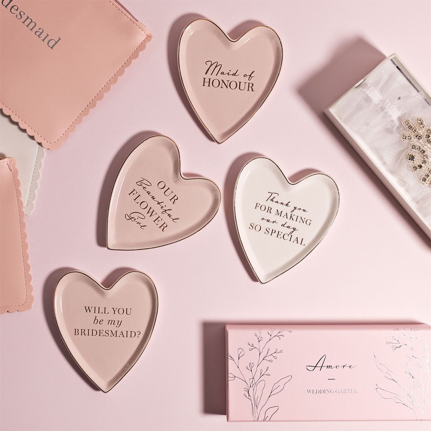 Help your girl squad keep their bridesmaid essentials safe and at hand with this beautiful pink and silver clutch bag. Details: - Pink PU - Silver 'Bridesmaid' title - Silver tassel on zip - Complete with gift box - 15 x 21cm
