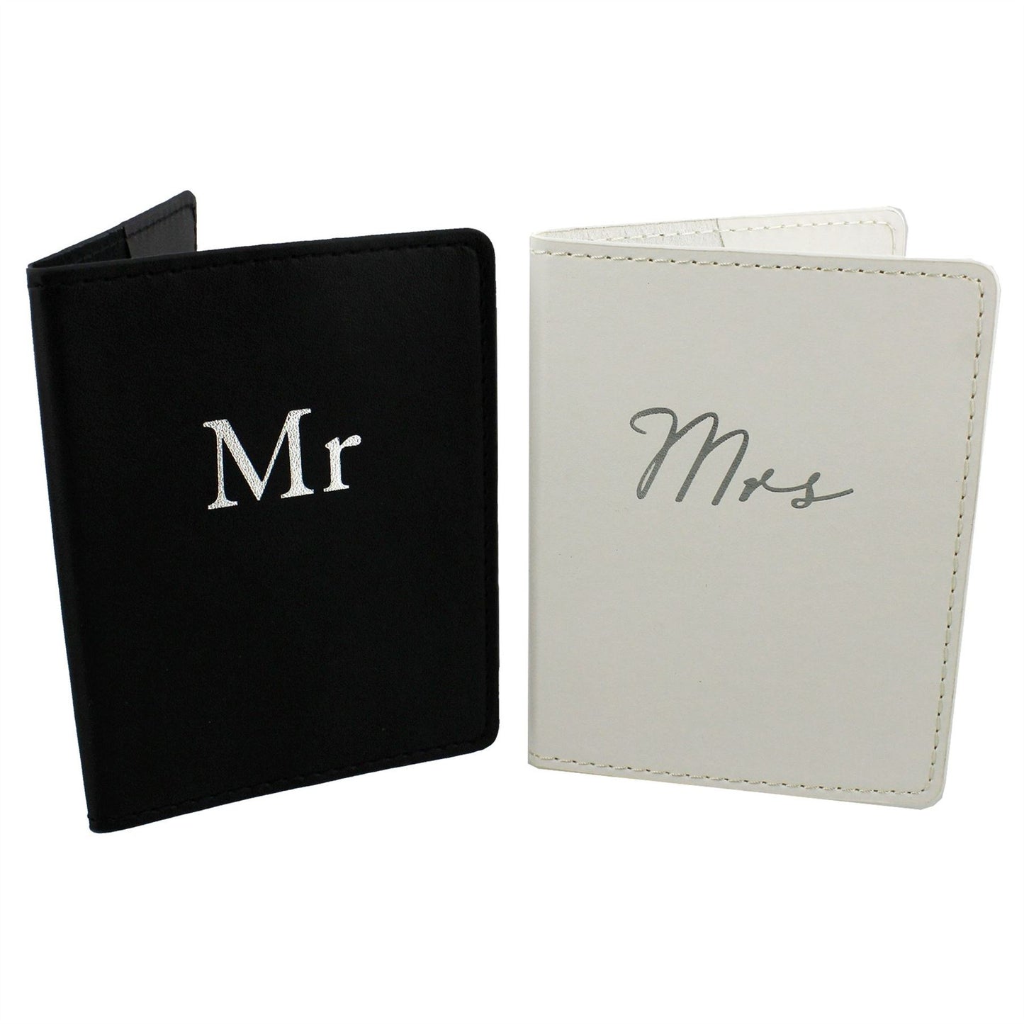 A beautiful set of his and hers 'Mr & Mrs' Passport Holders from AMORE BY JULIANA�. In black and Ivory leatherette with hot foil 'Mr' and 'Mrs' wording and luxury gift box, these make a fabulous pre-honeymoon gift. Create everlasting memories with a unique and beautiful gift to celebrate the most special of occasions.