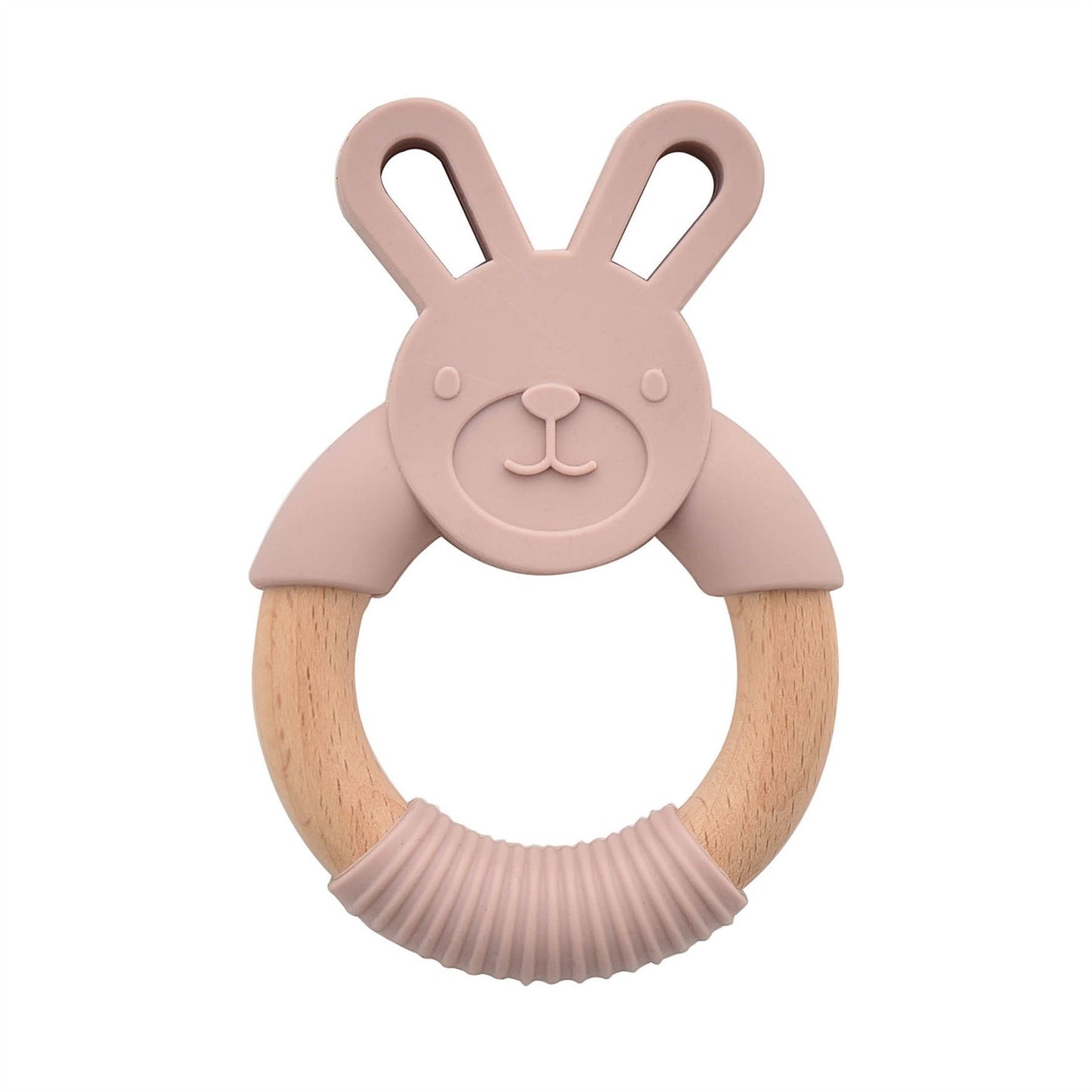 A bunny teether from BAMBINO BY JULIANA�. This adorable teether mixes contemporary design with vibrant imagery for the benefit of new family arrivals. The pink, silicone bunny character offers an engaging visual for babies. This is moulded around a smooth, wooden ring which showcases wood sourced from sustainably managed forests and provides comfort to delicate hands. The teether is packaged in a presentation box.