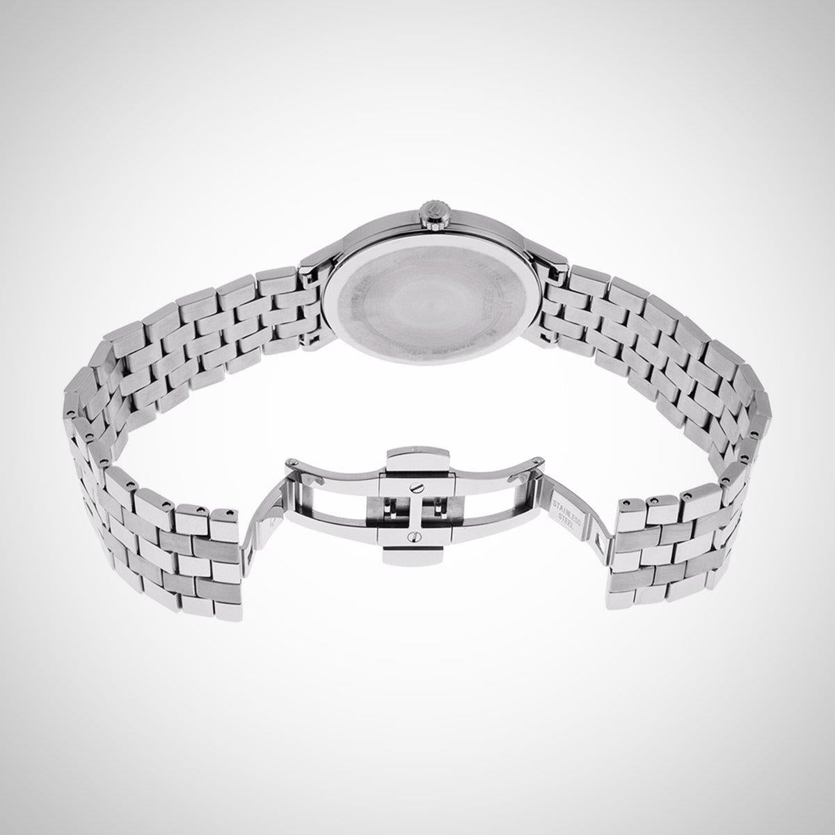The link bracelet secures with a deployment clasp. Ensuring accuracy, the Japanese quartz movement keeps you right on time. Water-resistant to 30 meters, this wristwatch includes a three-year limited manufacturer's warranty. Please note: Due to a recent redesign by Bulova, the watch you receive may not feature the Bulova tuning fork logo on the dial.