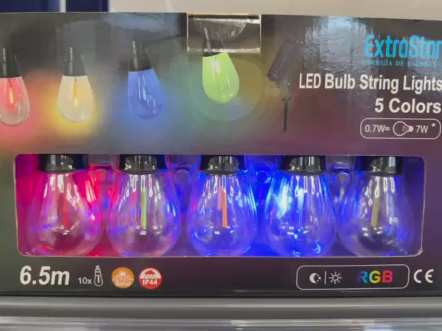 ExtraStar LED Solar Bulb String Lights, 6.5m, 10 bulbs, RGB