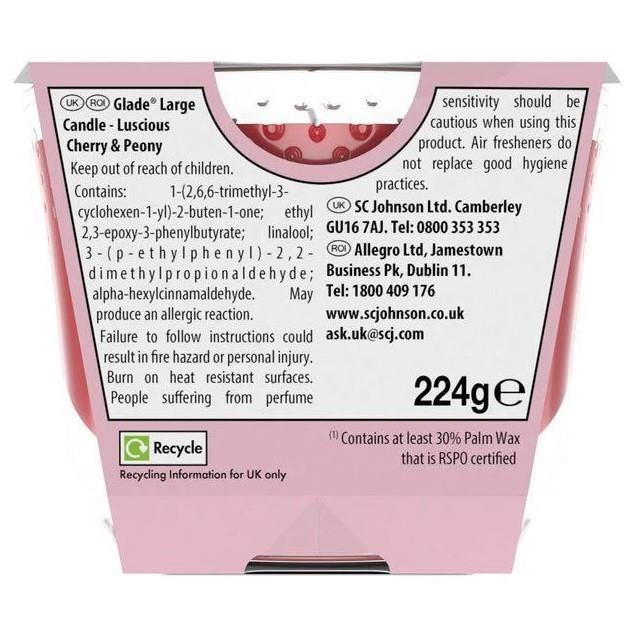 Glade Scented Candle Air Freshener Luscious Cherry & Peony 224 g