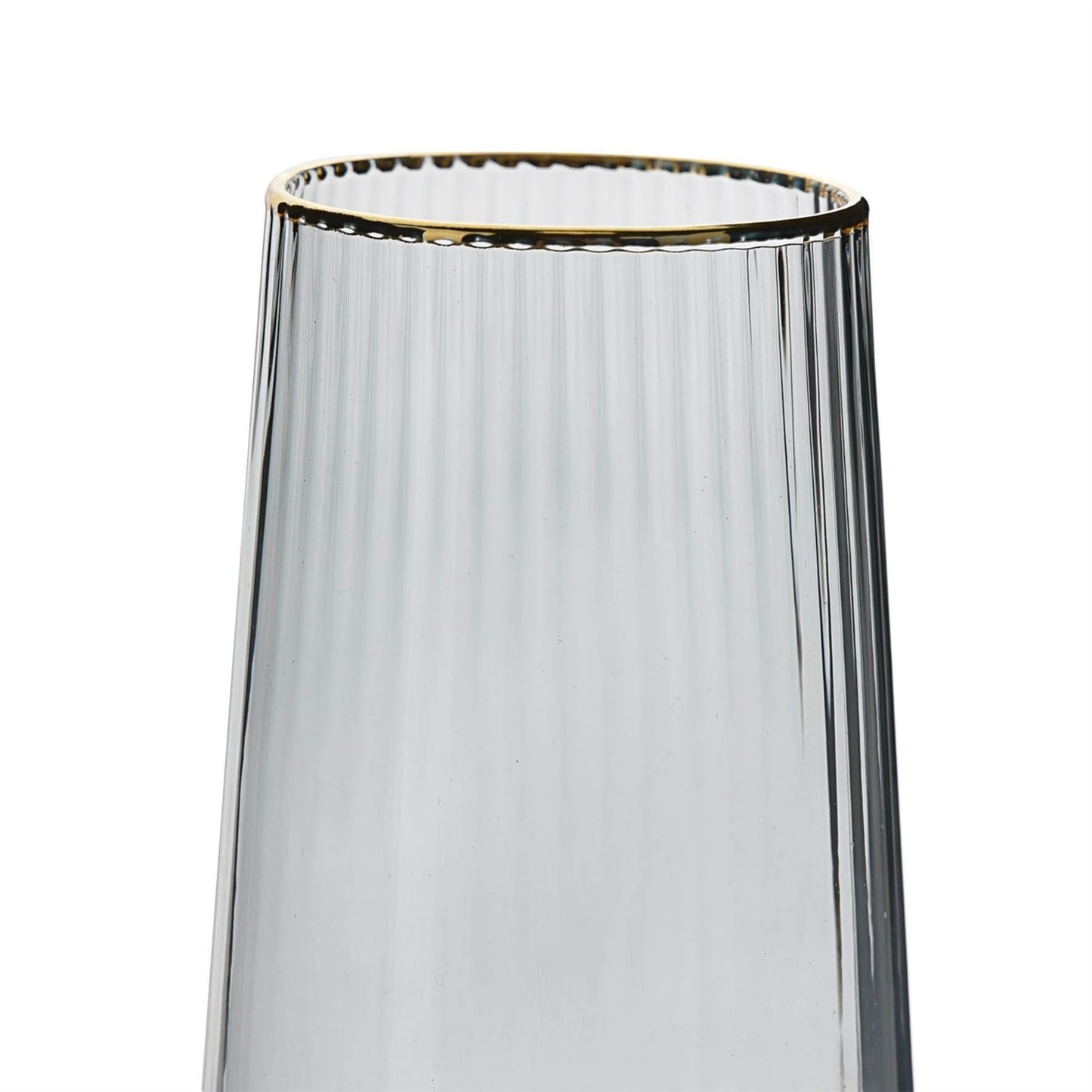 Hestia Set of 2 Grey Glass Champagne Flutes with Gold Rim