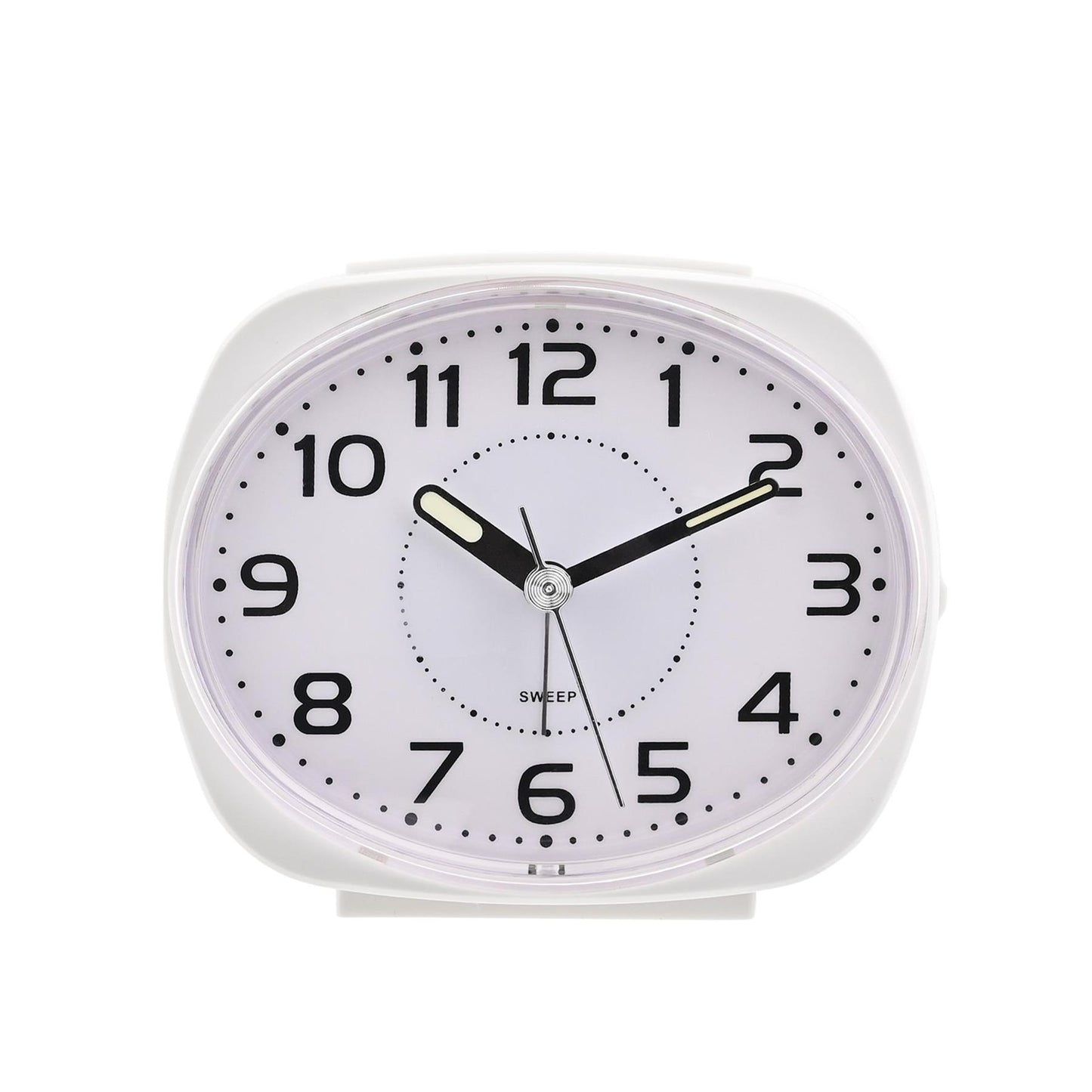 HOMETIME ALARM CLOCK OVAL WITH LUMINOUS HANDS WHITE CASE