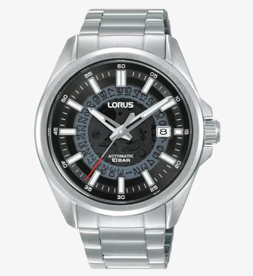 Lorus Mens Automatic Watch with Black Dial and Silver Bracelet RU401AX9. This Lorus wristwatch features a robust stainless steel case that gives it an elegant silver-coloured shine. The high-quality metal strap, equipped with a flat folding clasp and safety pusher, ensures maximum comfort and security on the wrist. It is water resistance is 100m. The luminous coating on the hour markers and hands ensures easy readability even in the dark. With a diameter of 43mm and a thickness of 12mm, this watch is covered by a 2-year manufacturer warranty and comes in official Lorus packaging.