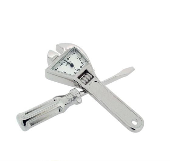 Miniature Clock Silver Plated Tool Set Solid Brass IMP1033 - CLEARANCE NEEDS RE-BATTERY