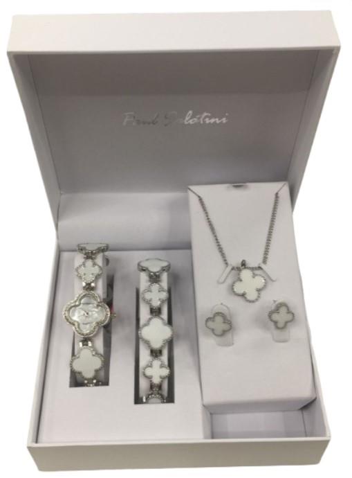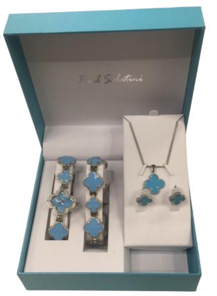 Paul Salatini Ladies Fashion Bling Dial Silver Bracelet Watch Bracelet, Necklace & Earrings Gift Sets 2531 Available Multiple Coloue