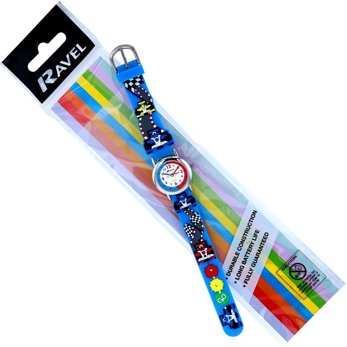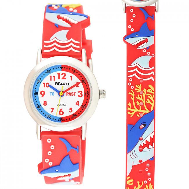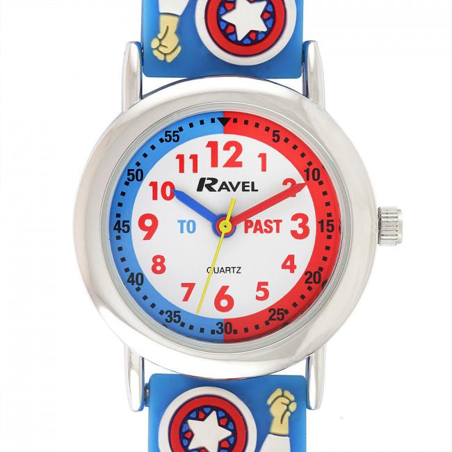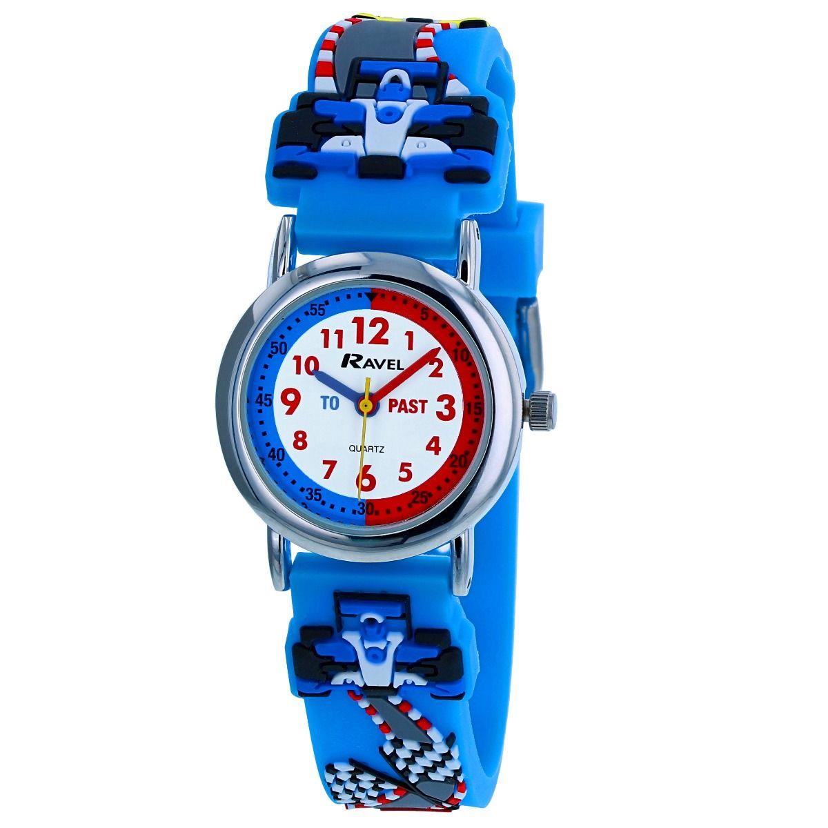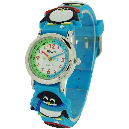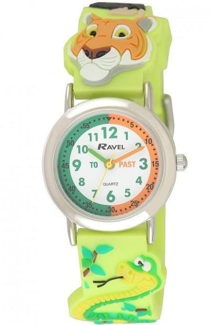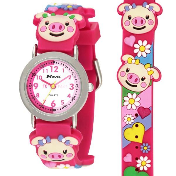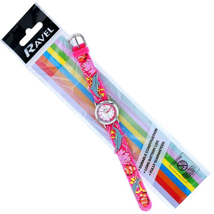Ravel Children Girls & Boys 3D Cartoon Time Teacher Watch Available Multicolour & Design Strap R1513 The Ravel Rascal Time Teacher range is the perfect watch to help teach children to tell the time with. Made using a soft silicon strap with high quality 3D childrens designs and a colour co-ordinated time teacher dial this watch will help demonstrate the difference between "to" and "past." It has a numbered minute track with a full 1-12 dial and coloured hour and minute hands to make learning to tell the time as easy as possible. The R1513 comes in this new fantastic cartoon ballerina design. All Ravel Kids Time Teacher watches are fitted with crown stoppers to protect battery life and are packed in a clear Ravel hanging pouch with guarantee card. Watch Description Polished Silver Round Case - 27mm. Full Arabic Colour Co-ordinated Time Teacher Dial and Hands. Silicon Strap with High Quality 3D Graphics. Fits the Smallest Wrists. Quality Quartz Movement. Packed in Ravel PVC Hanging Pouch with Guarantee Card.