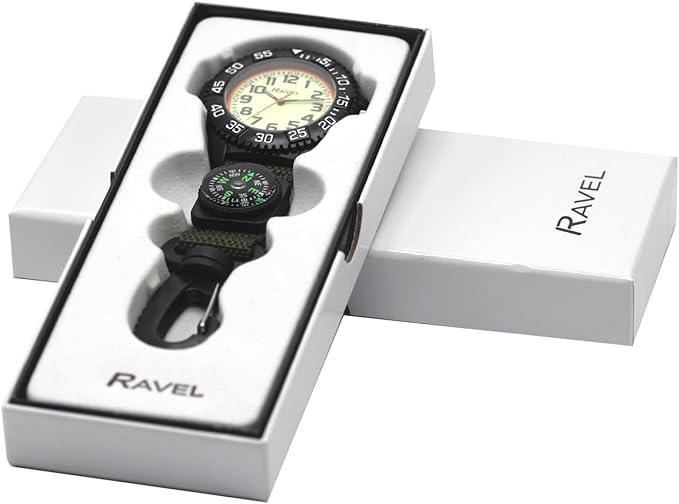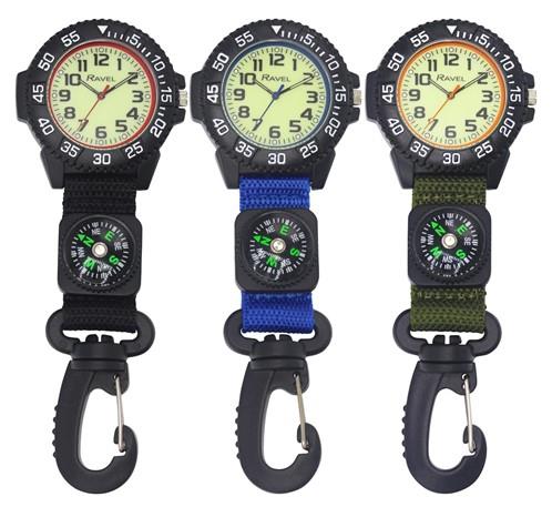 Ravel Mens Fashion Nylon Clip-On Carabiner with Compass and Luminous Dial Analogue Watch Available Multiple Colour