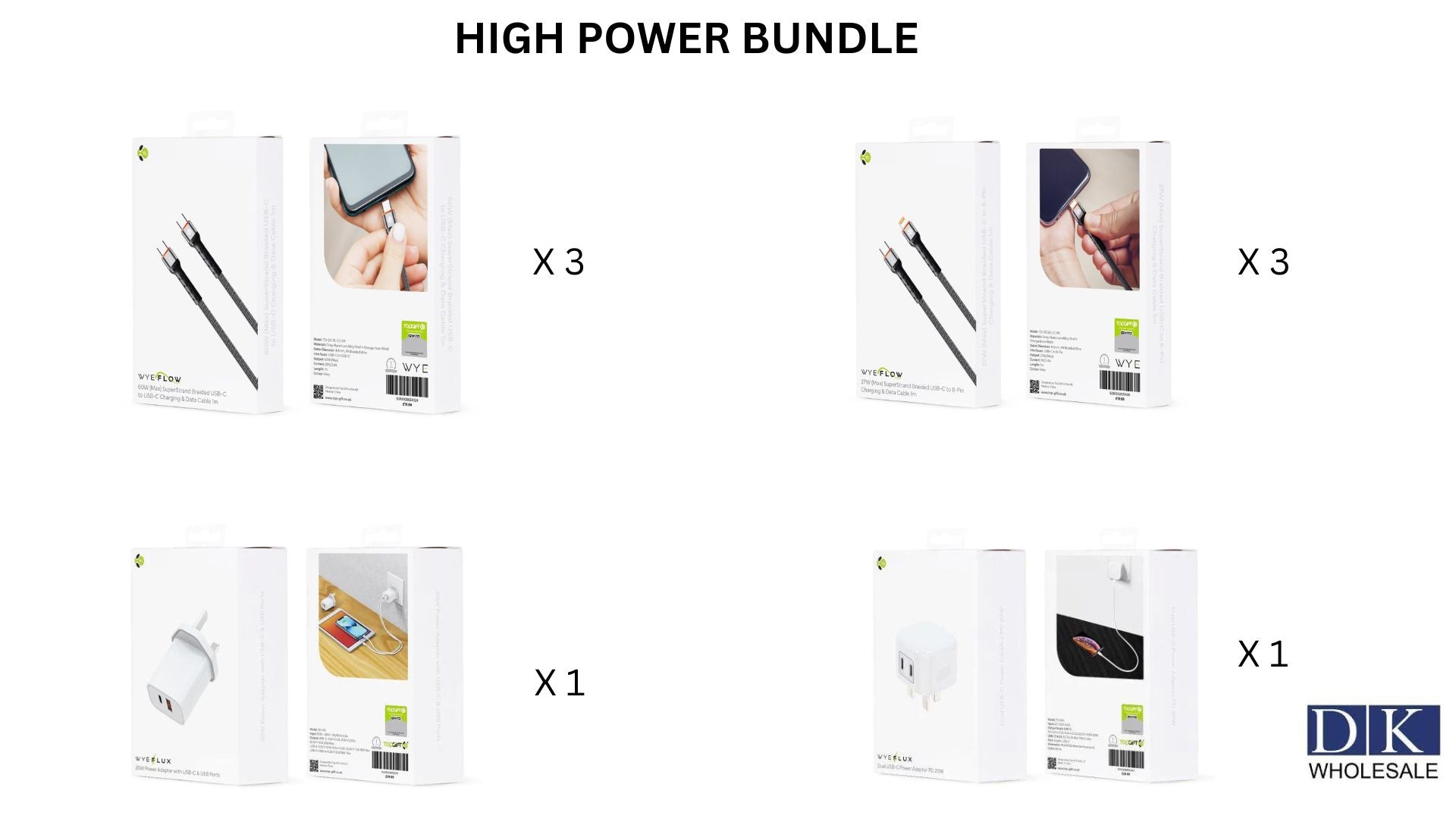 SuperStrand Braided USB-C to USB-C Cable 1m 60W x 3 + SuperStrand Braided USB-C to 8-Pin Cable 1M 27W x 3 + 20W Power Adapter USB-C and USB Port + 20W Power Adaptor Dual USB-C