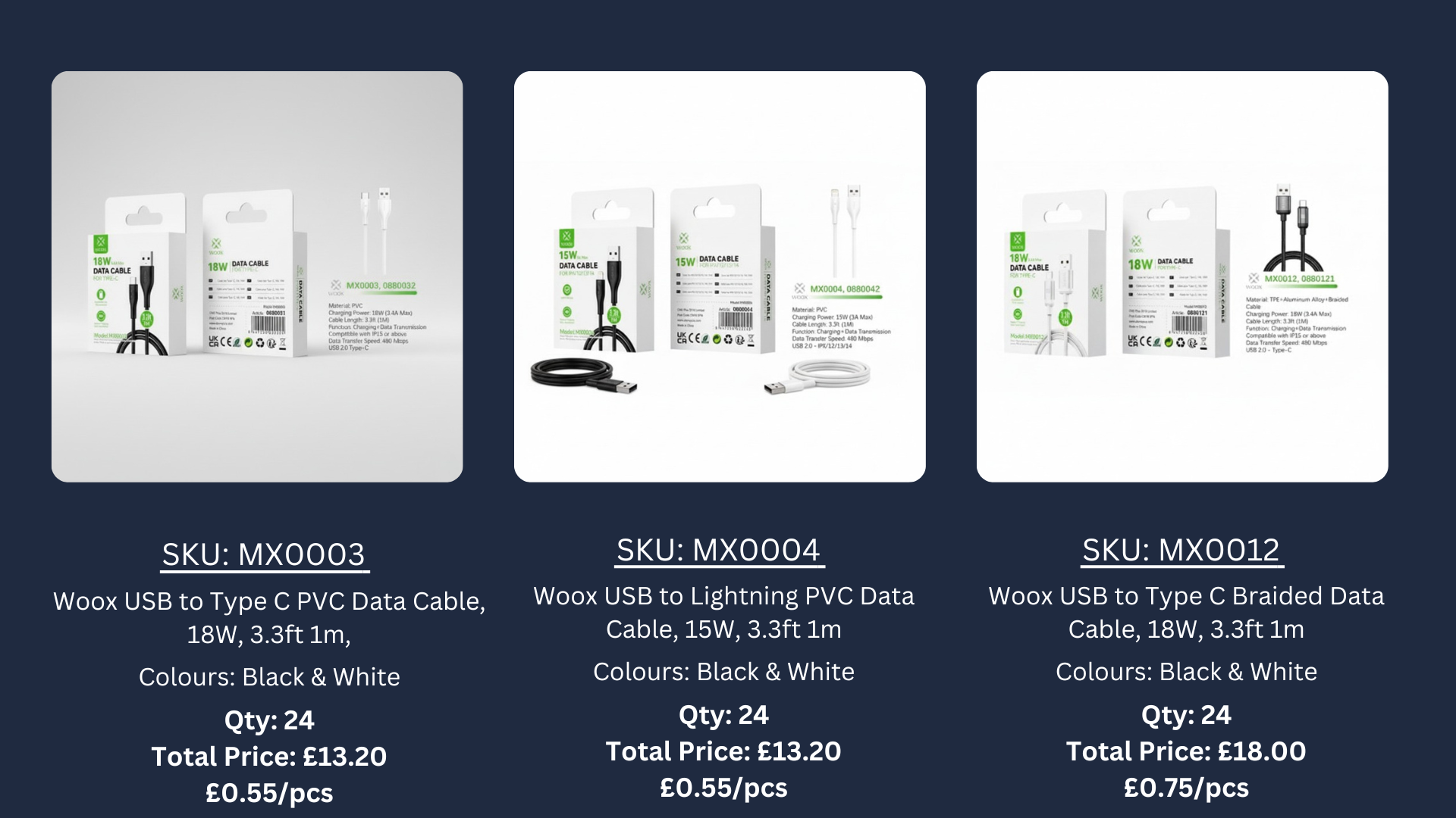 MX0013BK Woox MX0013 USB to Lightning Braided Data Cable, 15W, 3.3ft 1m, Black 0.75 12 9
